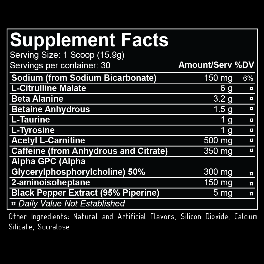 Broken Arrow™ draws from the power of cutting edge ingredients to deliver an explosive workout experience. Due to the engulfing energy contained within a single serving, Broken Arrow™ is only recommended for advanced stimulant users. Under no circumstances should more than 1 serving be consumed in any 24-hour period- and that means no heaping scoops either, we don't care how tough you think you are. Don't say we didn't warn you.